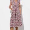 It is made from a lightweight, smooth fabric with a navy blue base, adorned with a stunning floral print featuring large pink and white blossoms. The dress has a flattering midi length and a tiered, ruffled skirt that adds movement and a touch of whimsy. It features a twisted, knot-style bodice with a square neckline and wide straps for a chic, feminine look.