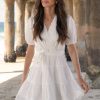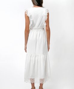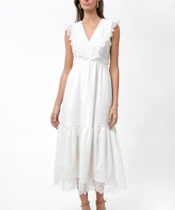 Adelyn Rae Women’s Adaline Floral Lace Trim Maxi Dress | White