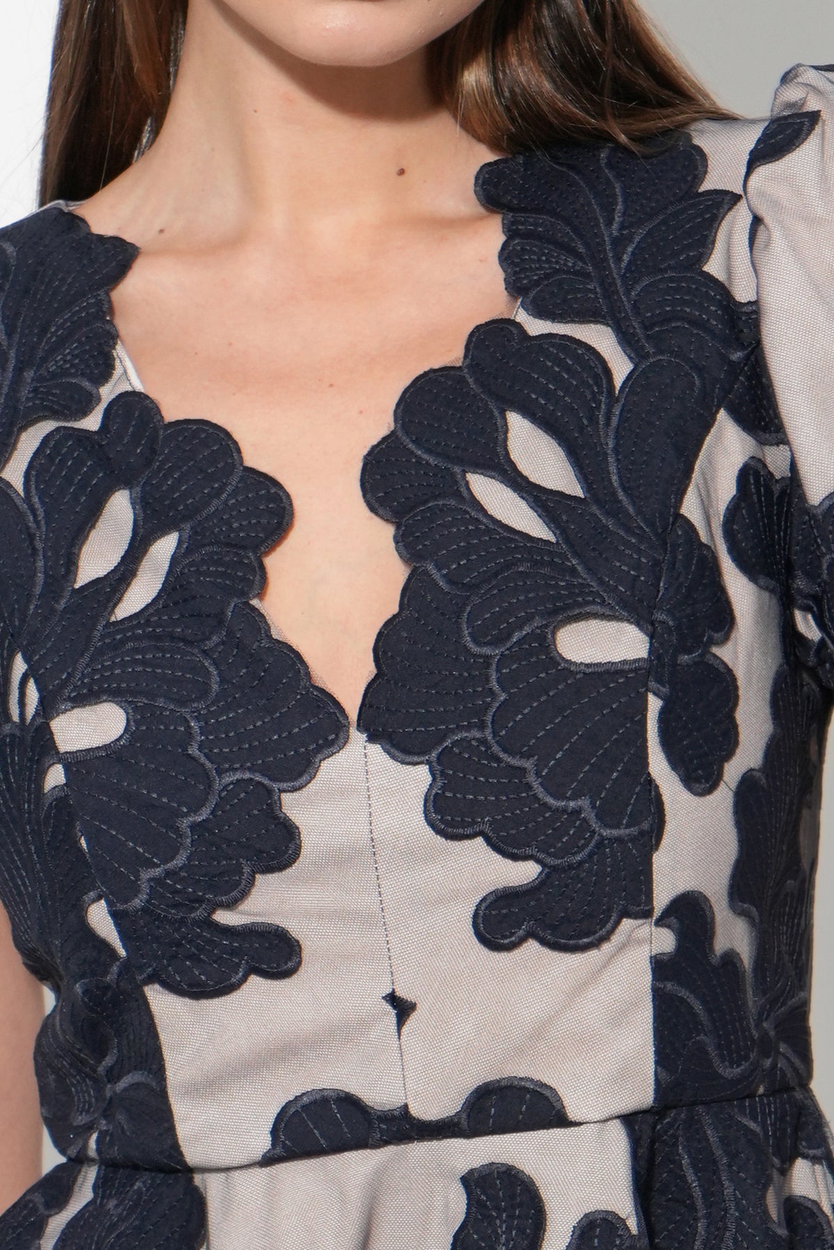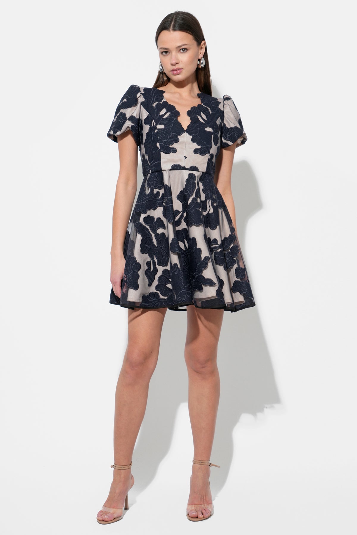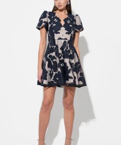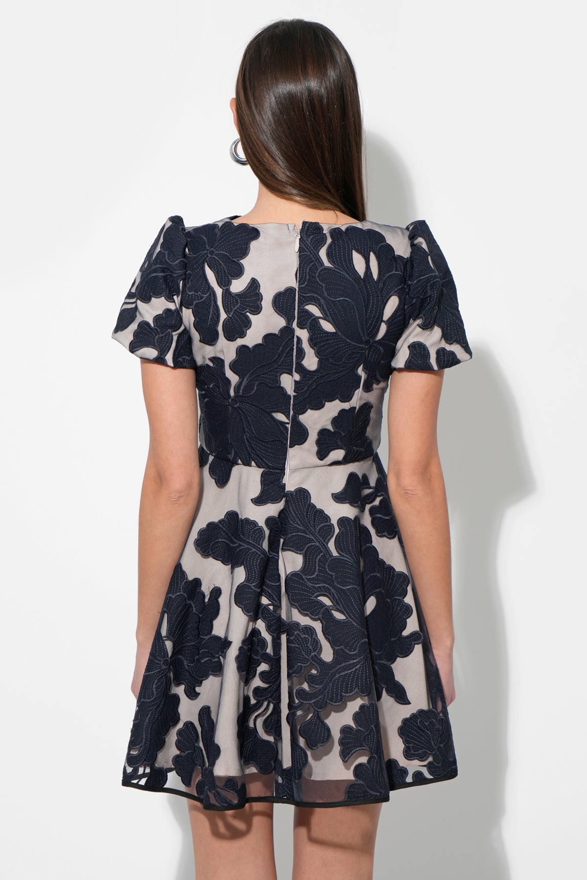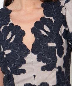 Adelyn Rae Women’s Agnes Embroidered Puff Sleeve Mini Dress | Navy & Nude