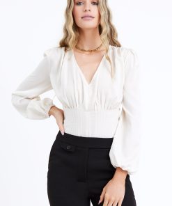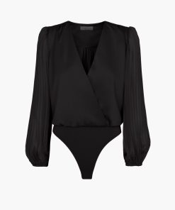 This top offers an ultra-feminine look with its pleated organza balloon sleeves and wrap-over styling. Its folded texture lends to a unique, stylish shape, ensuring your look stands out.