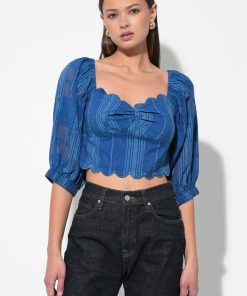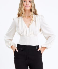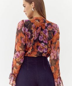 This top offers an ultra-feminine look with its pleated organza balloon sleeves and wrap-over styling. Its folded texture lends to a unique, stylish shape, ensuring your look stands out.
