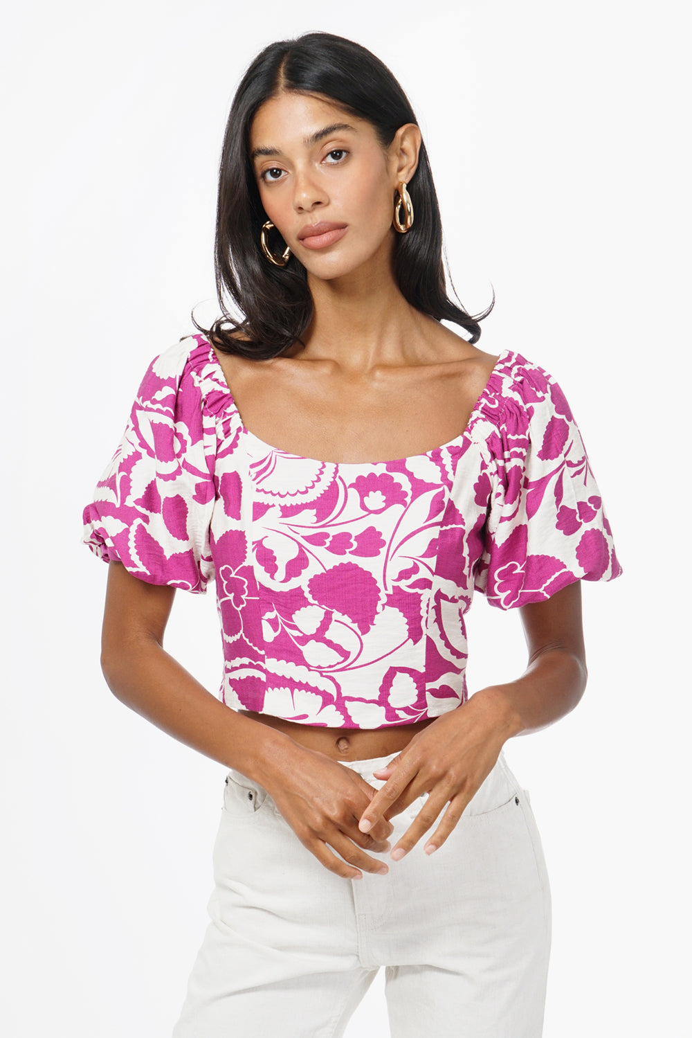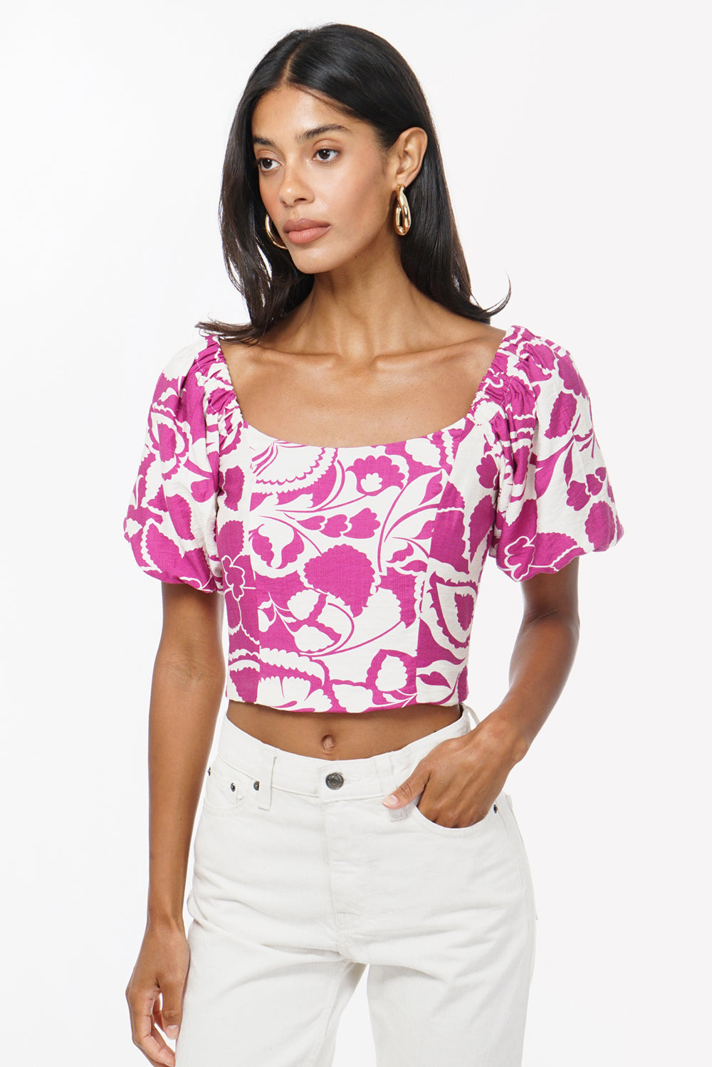 Your new favorite statement top just entered the chat. The Anissa features bold floral print, puff sleeves, and a flattering wide neckline. The cropped length pairs perfectly with high-waisted denim or mid-rise pants for a fun and flirty look.