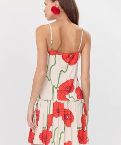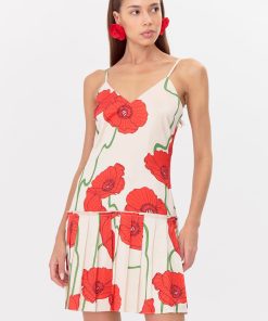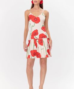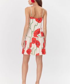 The Camila Mini Dress is your go-to for making a statement. Featuring a vibrant poppy print on a fluid silhouette, this dress exudes romantic energy with every step. The adjustable spaghetti straps and soft V-neckline lend a delicate touch, while the drop-waist pleated skirt creates playful movement.