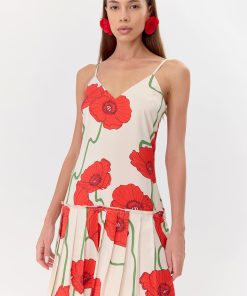 The Camila Mini Dress is your go-to for making a statement. Featuring a vibrant poppy print on a fluid silhouette, this dress exudes romantic energy with every step. The adjustable spaghetti straps and soft V-neckline lend a delicate touch, while the drop-waist pleated skirt creates playful movement.