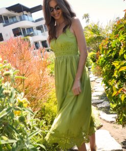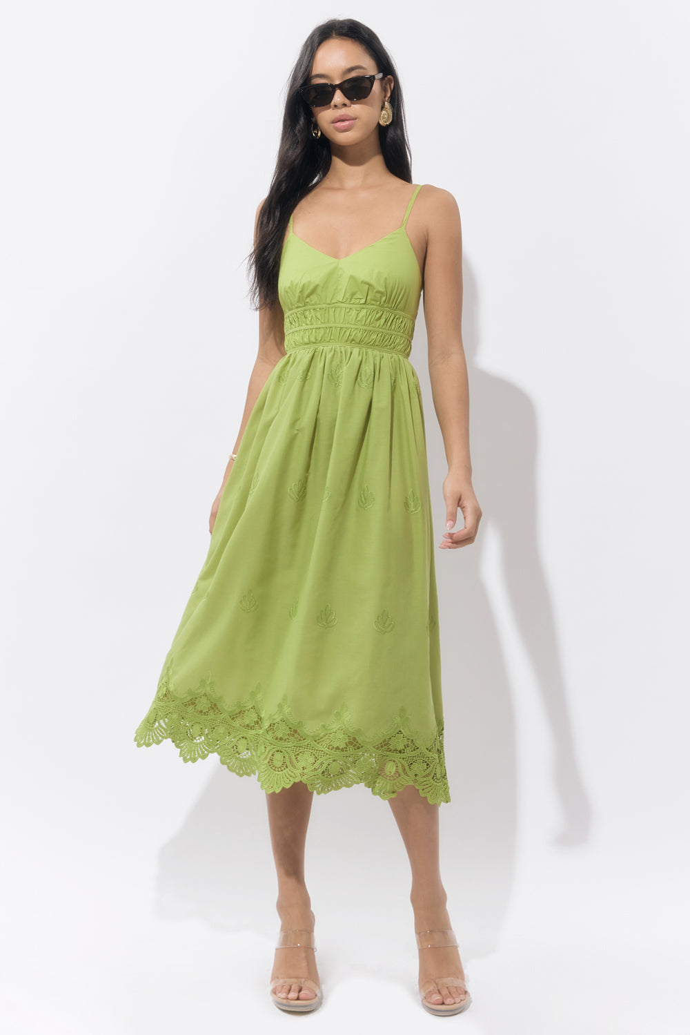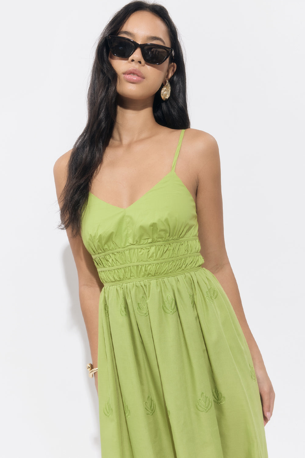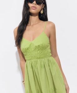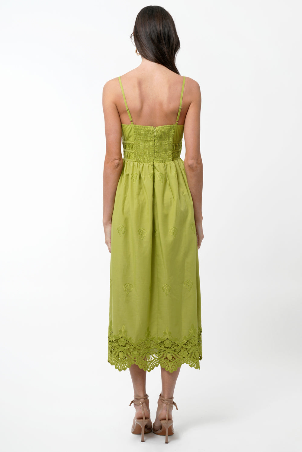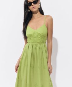 Designed with delicate shoulder straps, a smocked waist for a flattering fit, and intricate tonal embroidery throughout, this dress brings ease and elegance in equal measure. The scalloped hem adds a romantic finish to the flowy A-line silhouette.