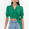 The “Daphne Crop Top” is defined by it’s soft floral print. Imagined in green and ivory shades, the top features a scallop trim and thick strap. As seen in images, it can be paired with the matching Daphne Skirt but you can easily mix and match with your favorite bottoms.