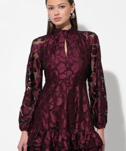 Adelyn Rae Women’s Elinor Velvet Burnout Mock Neck Fit And Flare Dress | Wine