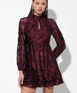 Adelyn Rae Women’s Elinor Velvet Burnout Mock Neck Fit And Flare Dress | Wine
