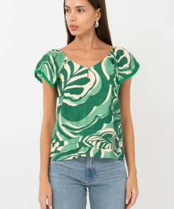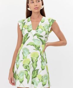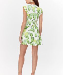 This floral mini dress stands out with it’s classy and casual silhouette. Imagined in green and white shades, the dress features a V-neck with a twist front detail and a dropped waist line. Adding shape are folded cuffs at the shoulder.