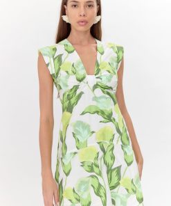 This floral mini dress stands out with it’s classy and casual silhouette. Imagined in green and white shades, the dress features a V-neck with a twist front detail and a dropped waist line. Adding shape are folded cuffs at the shoulder.