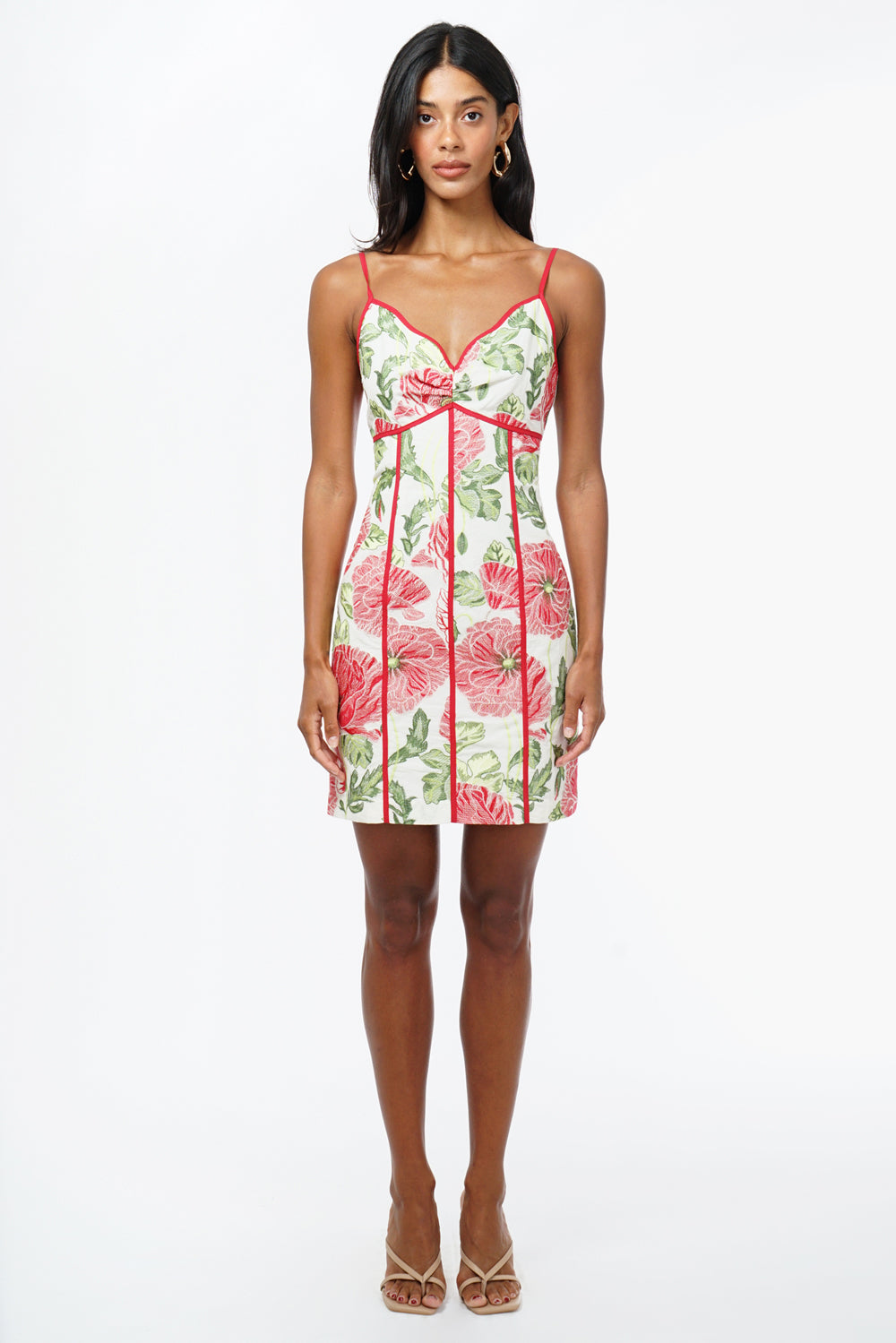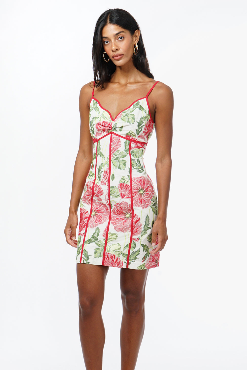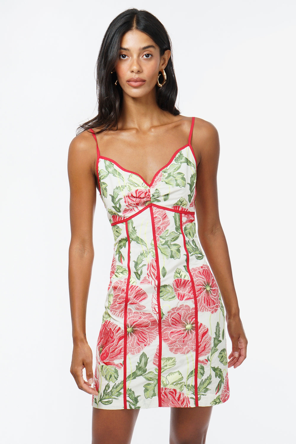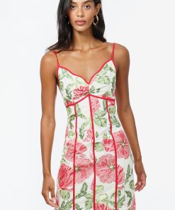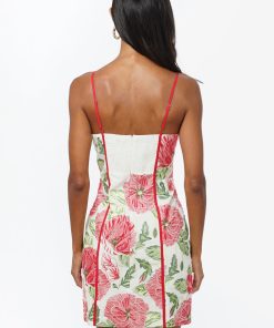 Adelyn Rae Women’s Fei Contrast Scalloped Textured Jacquard Mini Dress | Ivory & Red