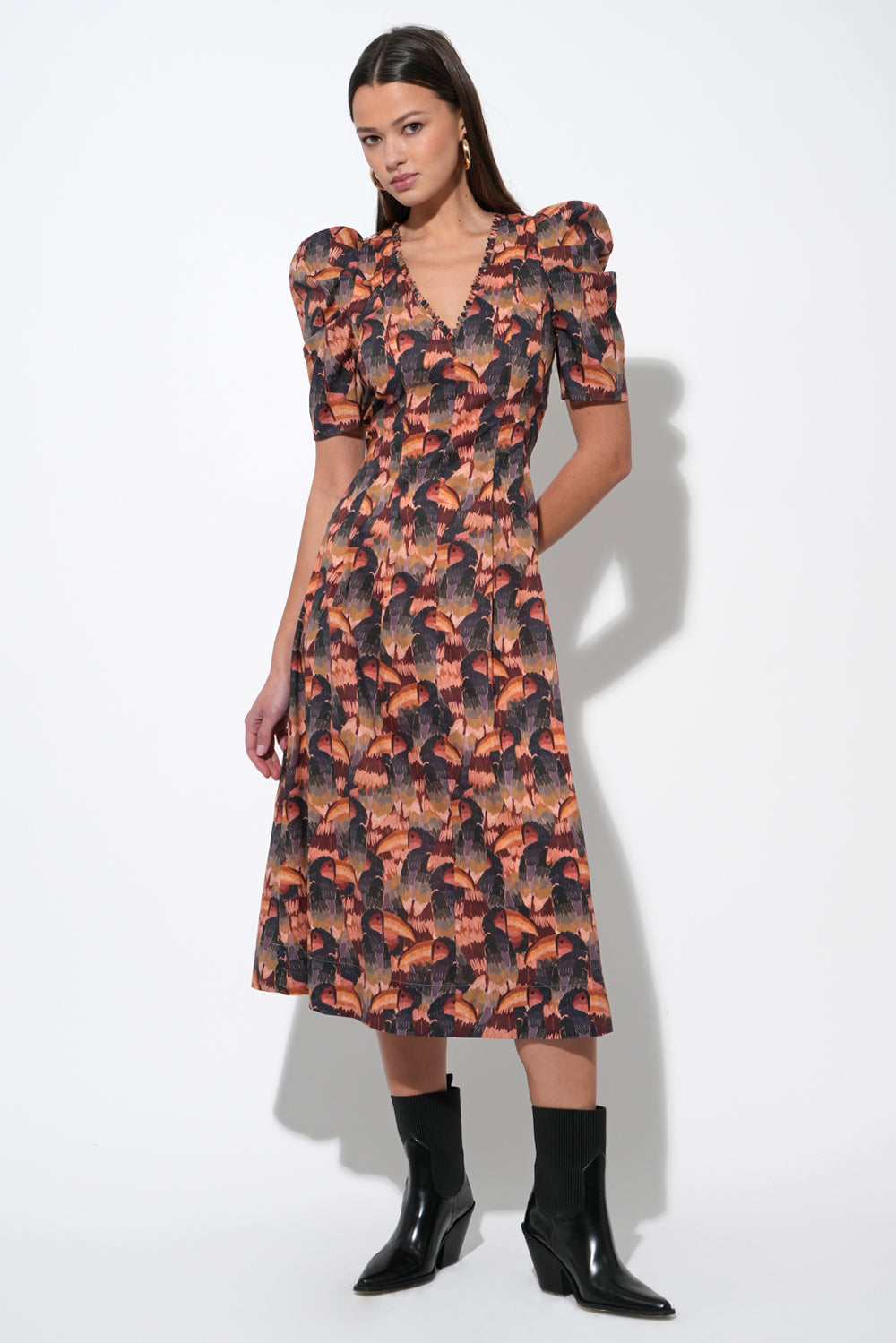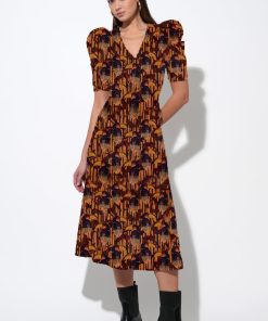 Adelyn Rae Women’s Gracie Puff Sleeve Midi Dress | Multi Color