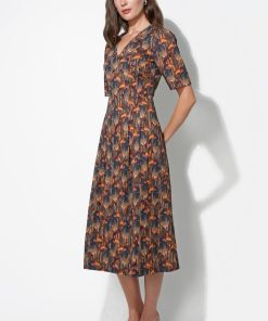 Adelyn Rae Women’s Gracie Puff Sleeve Midi Dress | Multi Color