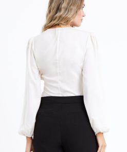 This timelessly designed bodysuit features a fitted waist and gathered bodice to flatter your figure, plus dramatic puff sleeves and a v neck to tie the design together. With its attention to detail, this piece will elevate your look and have you feeling amazing!