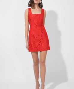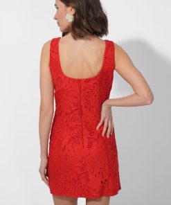 Designed with a sleek square neckline and a body-skimming silhouette, this mini dress is the perfect balance of sophistication and allure. The intricate 3D lace overlay adds a touch of romance. Installed with a back zipper closure.