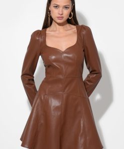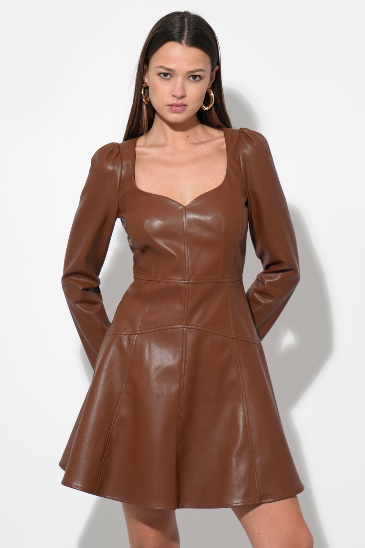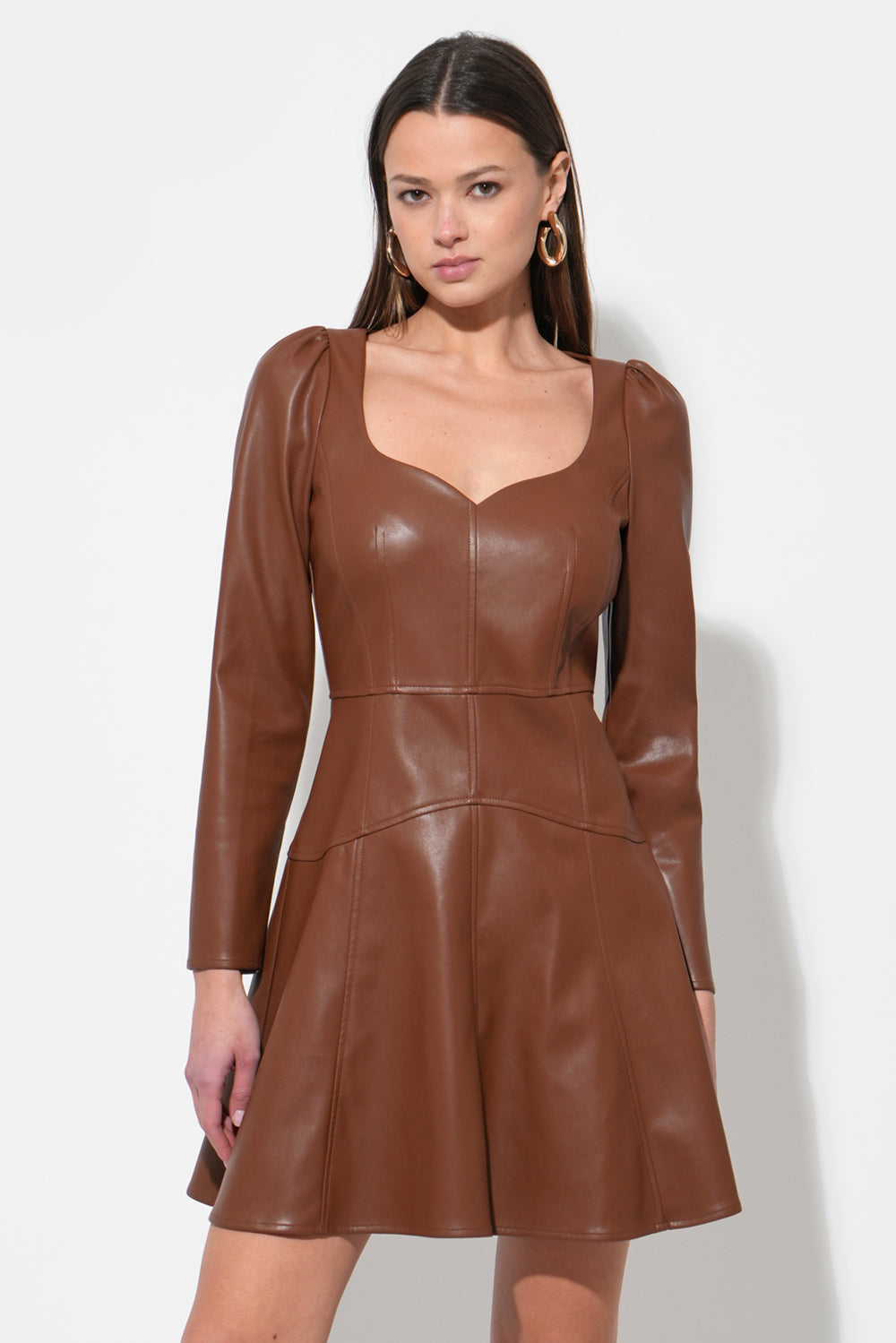 Adelyn Rae Women’s Kaleen Faux Leather Mini Dress | Brown