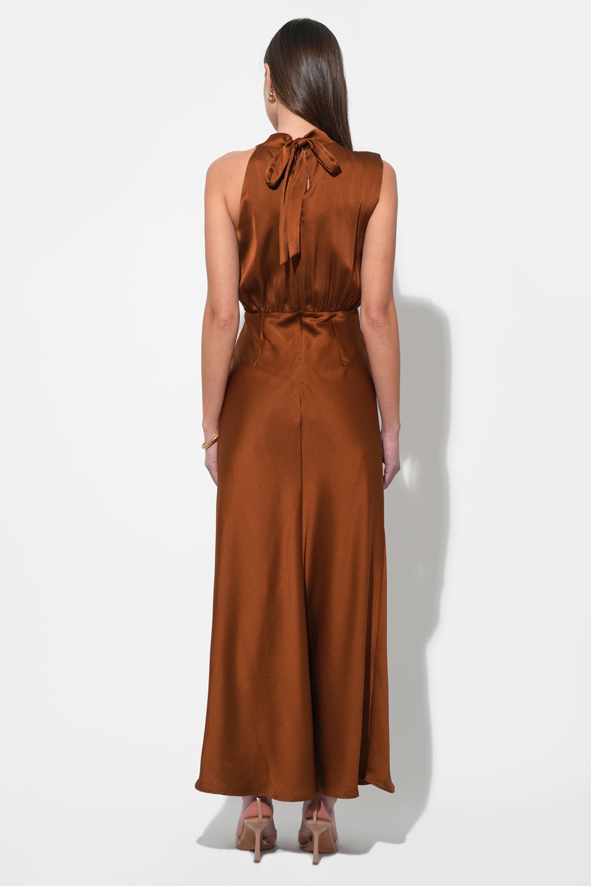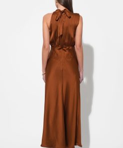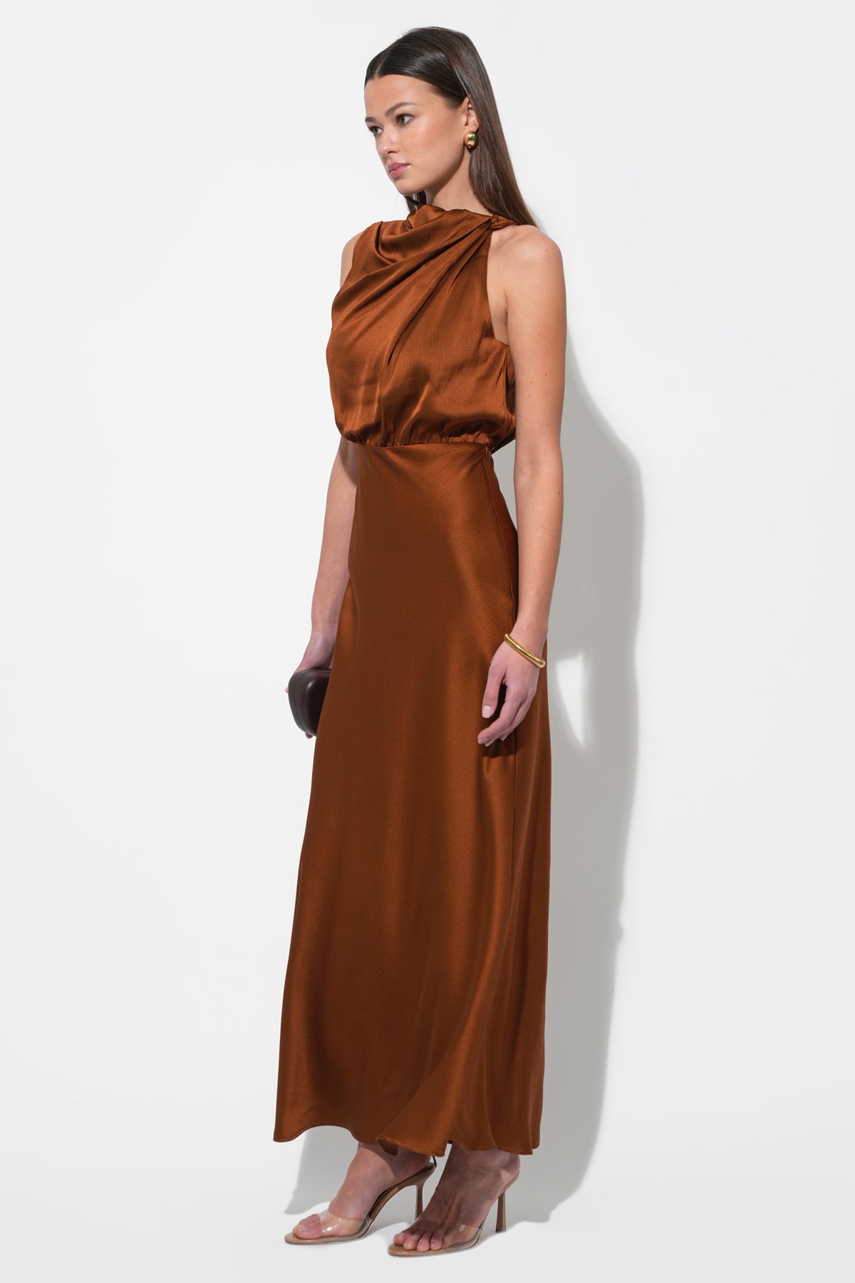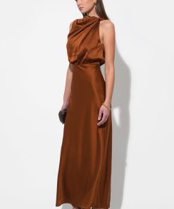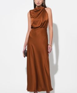 Adelyn Rae Women’s Kate Cowl Drape Asymmetrical Maxi Dress | Toffee