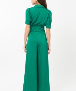 Introducing the Keva Blouse, a stunning crop top featuring a wrap design and puffed sleeves. Part of a matching set with the Keva Trousers.