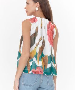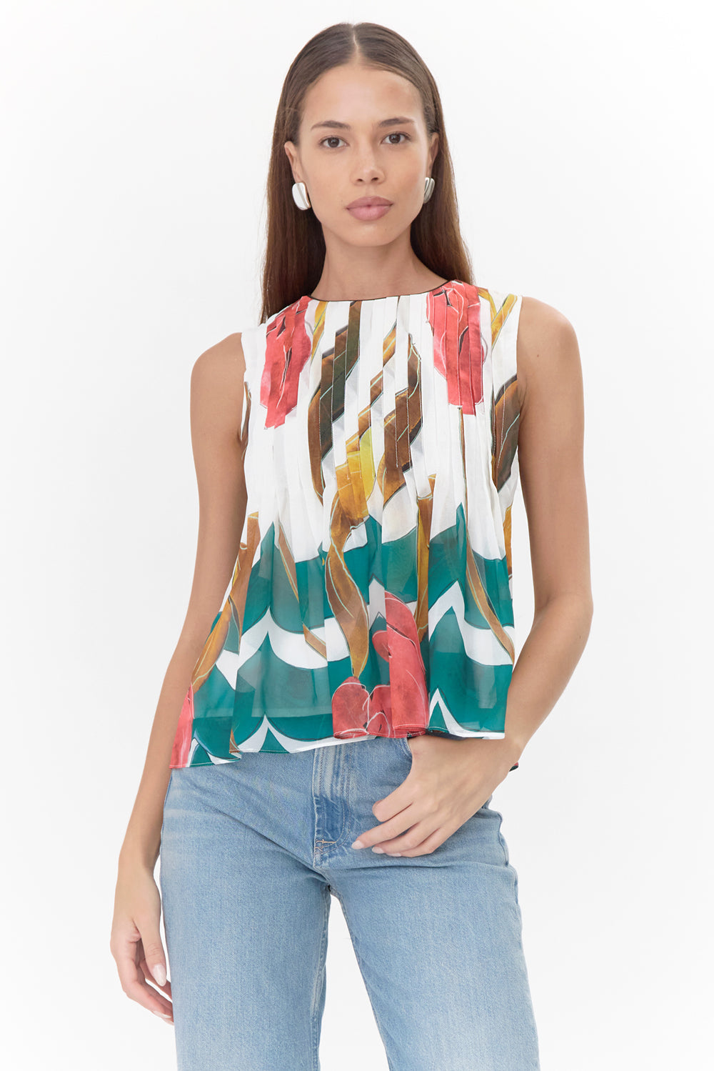 Adelyn Rae Women’s Merida Pintucked Printed Peplum Blouse | White Multi
