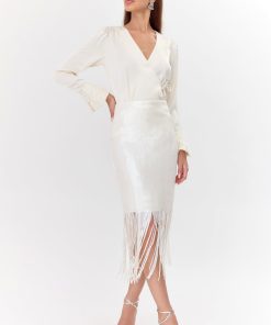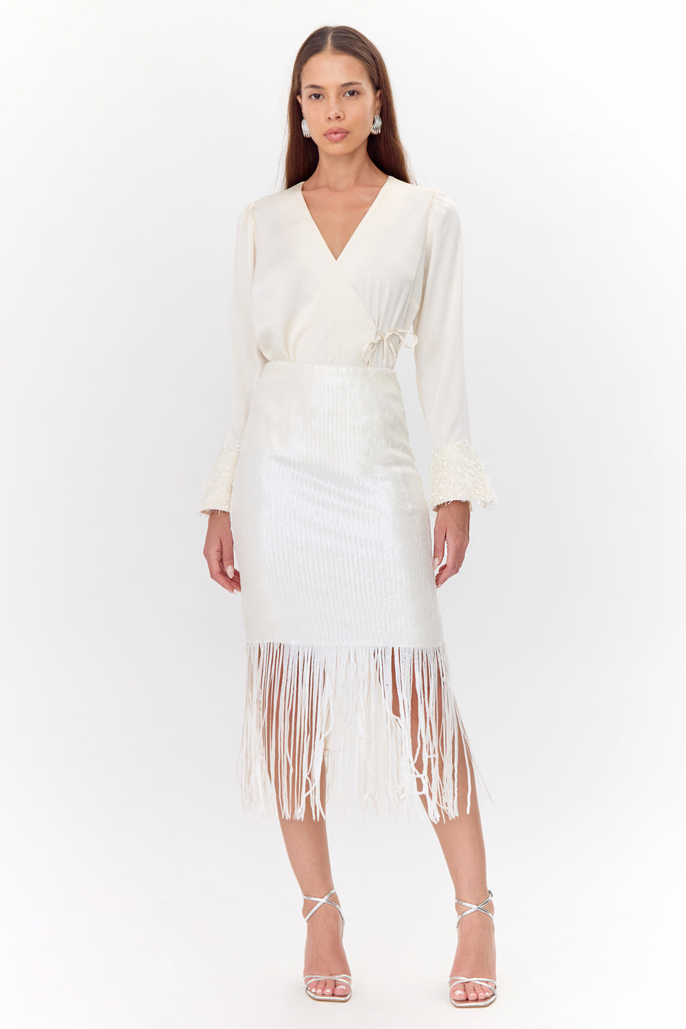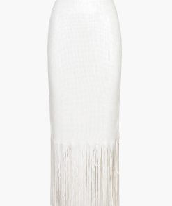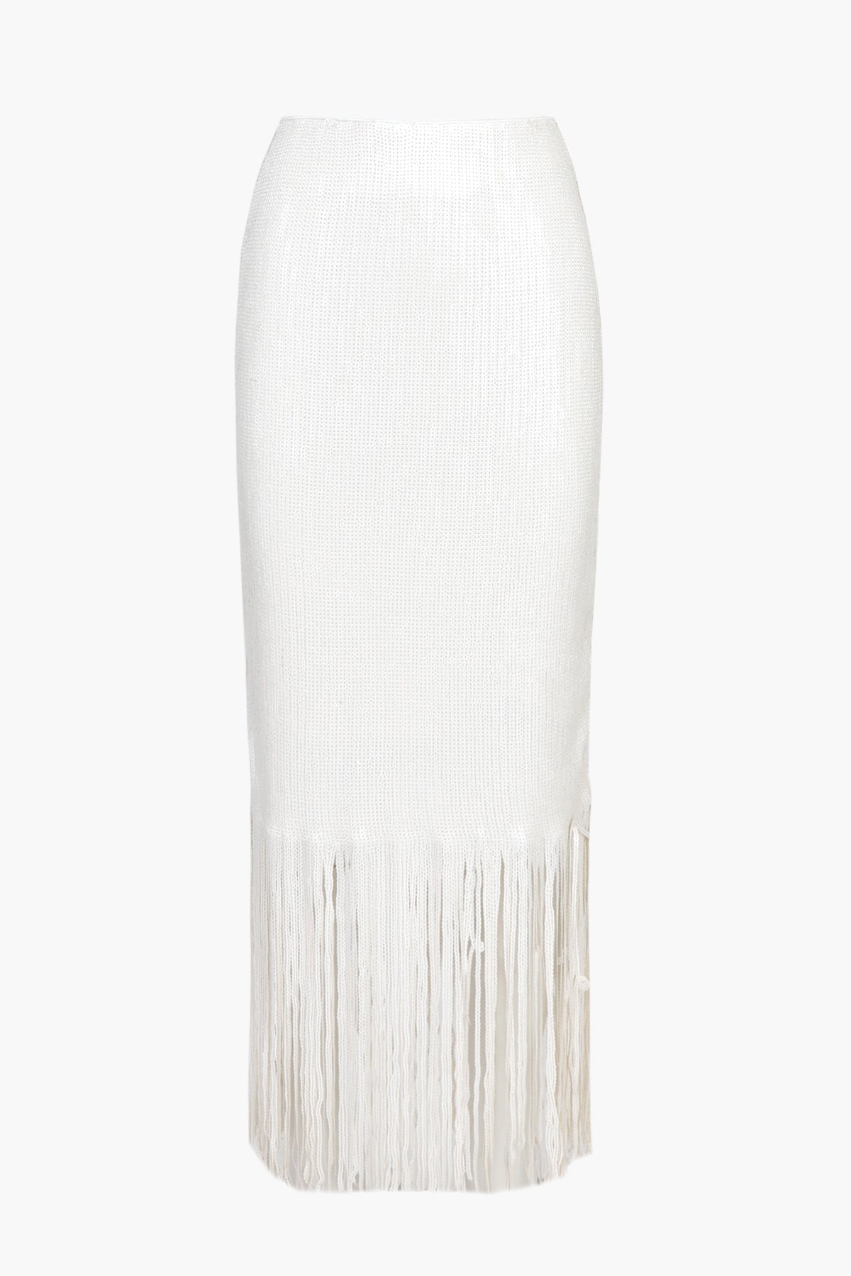 Adelyn Rae Women’s Milana Sequins Fringe Midi Skirt | Matte Ivory