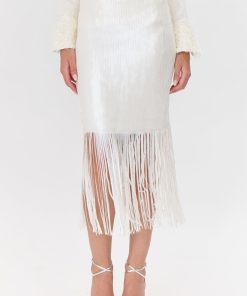 Adelyn Rae Women’s Milana Sequins Fringe Midi Skirt | Matte Ivory