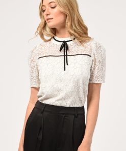 Adelyn Rae Women’s Nelli Puff Sleeve Lace Top | White & Black