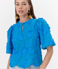 This delightful midi skirt features a vibrant bird and floral print in a rich palette of blues, reds, and greens, accented by a contrasting solid blue tiered panel. The comfortable elasticated waist ensures a perfect fit, while the flowing tiered silhouette adds graceful movement. Perfect for creating a effortlessly stylish look, this skirt combines intricate embroidery with a relaxed, comfortable design.