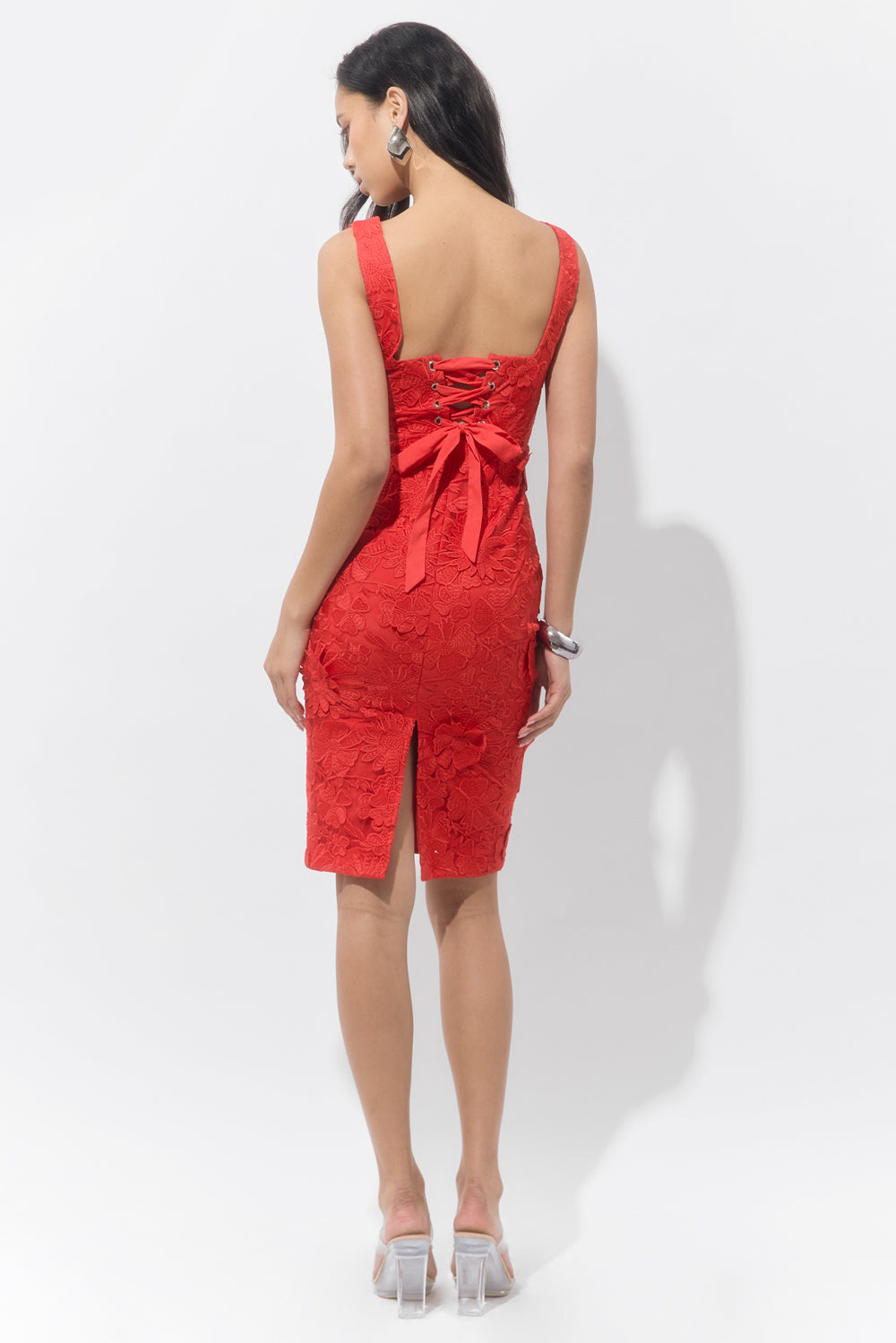 Adelyn Rae Women’s Vonna 3d Lace Up Midi Dress | Red